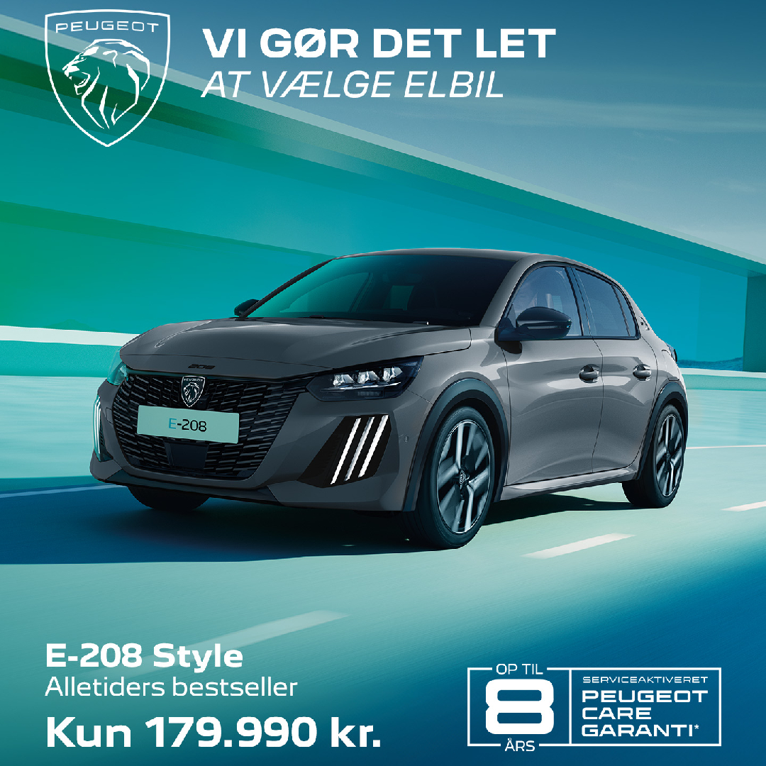 Bestselleren E-208 er den oplagte bybil med dit sporty design, avanceret teknologi og kvalitet i særklasse. Skabt til store køreoplevelser med fokus på præcision og køreglæde.