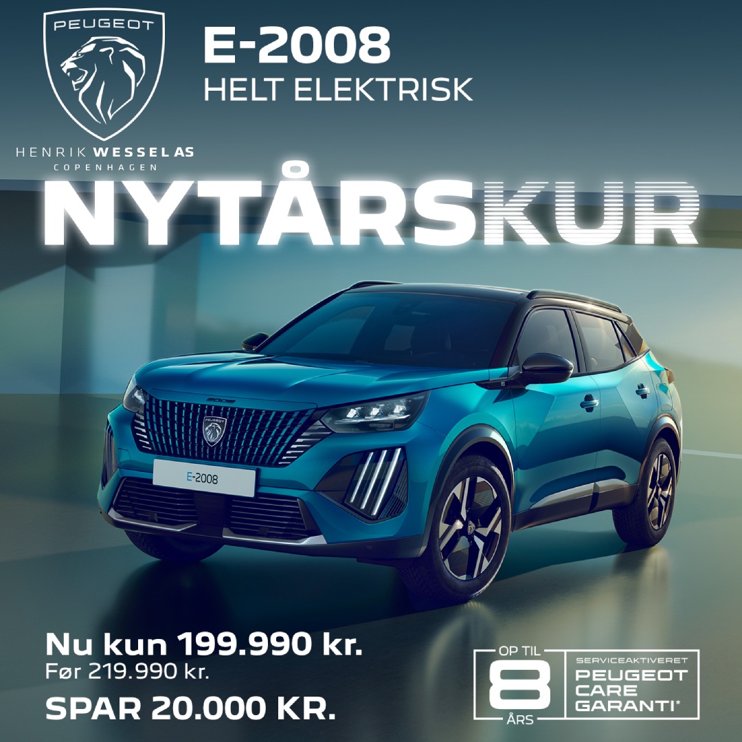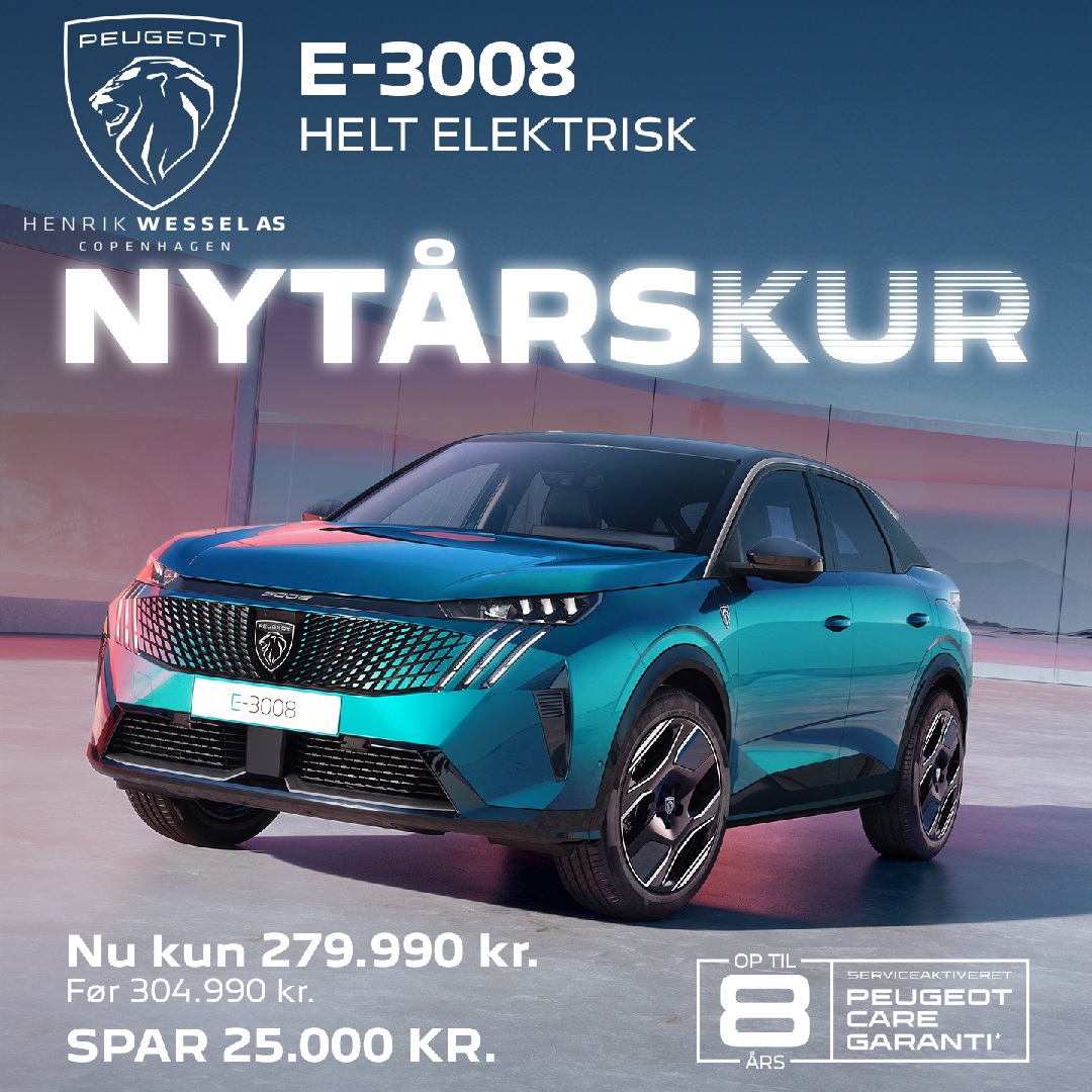 Peugeot E-3008 Vision 279.990 kr. Spar 25.000 kr. inkl. 1 års gratis opladning, med Clever og installation* 📞 Kontakt vores salgsafdeling |