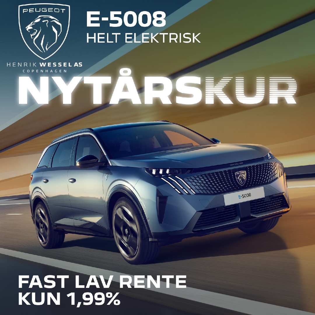 Peugeot E-5008 Allure 344.990 kr. inkl. 1 års gratis opladning, med Clever og installation* Peugeot E-5008 GT Pack 374.990 kr. Vælg E-5008 GT PACK og få en fordelagtig rente på kun 1,99% 📞 Kontakt vores salgsafdeling for mere info og book prøvetur Ring 4444 9999